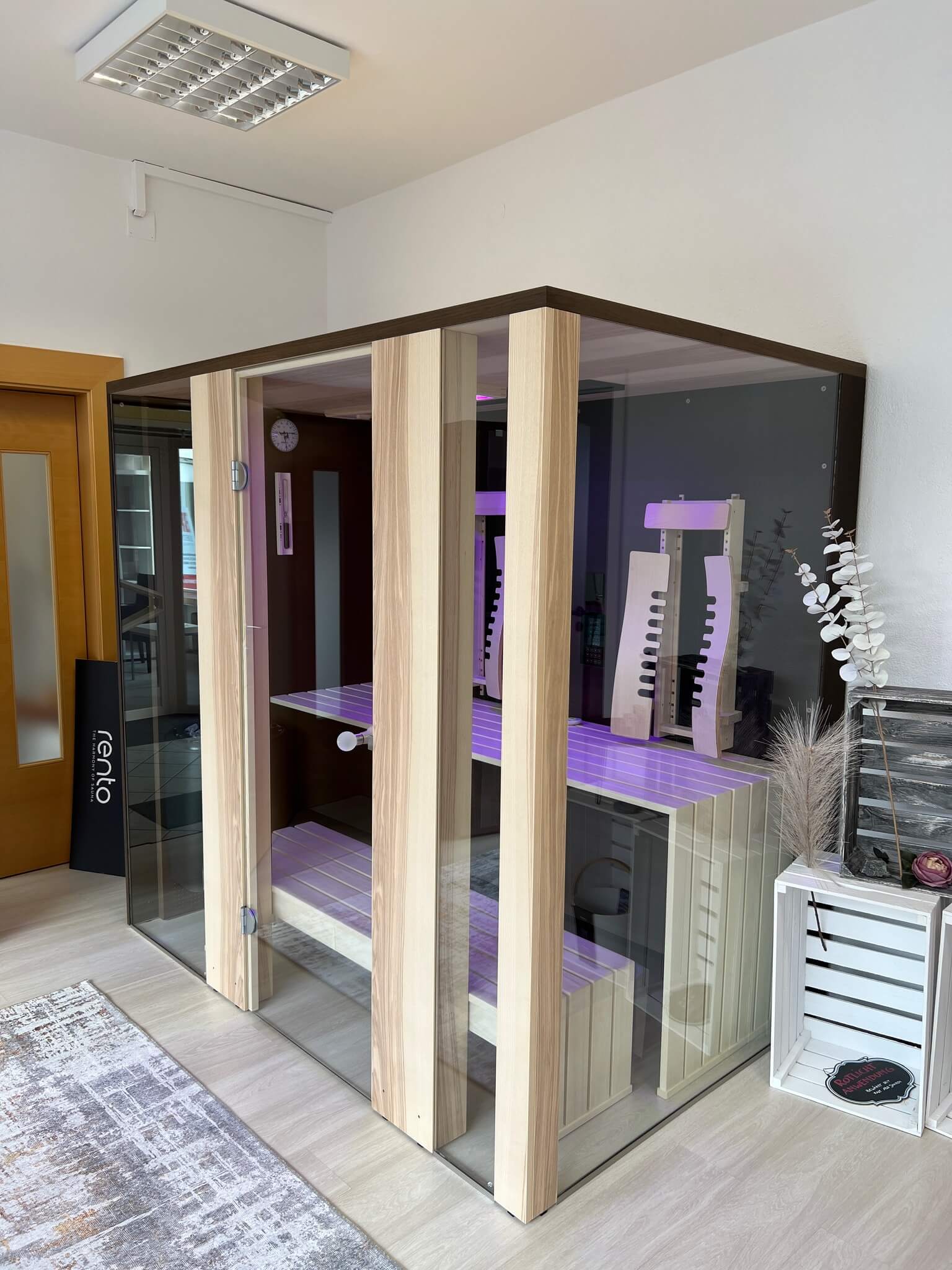 Zum Saisonende ist eine besonders edle Kombisauna als Ausstellungskabine erhältlich.